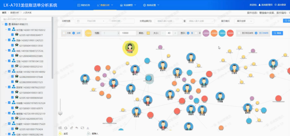 LX-A703 龙信账话单分析系统面向公安、纪委监委、检察院、工商、海关等部门依法侦查、调查的业务需求,可以对重要财产类型一银行账单(包括微信、支付宝账单)进行分析,辅助查办经济类犯罪、职务类犯罪、走私类犯罪、洗钱犯罪等与财产、经济活动密切相关的违法犯罪活动,能够有效提高侦查、调查工作的效率和线索挖掘的能力。
