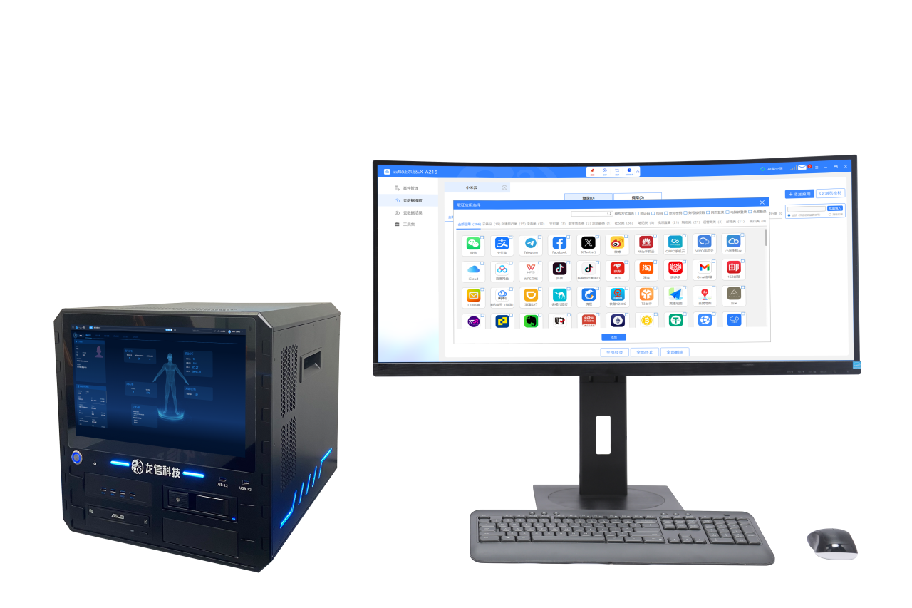 LX-A216云取证系统是一款集应用云端数据的数据获取、下载固定、数据分析、结果导出等功能于一体的专业取证设备。系统支持账号密码、二维码扫码、短信验证码等多种登录方式,可对云端数据进行结构化处理及分析。适配多种常见应用,包括包括支付、出行、购物、社交、快递、邮箱、云备份等各类型APP,可提取支付账单、购物订单、收货地址、消息记录、出行行程、邮件、网盘文件等云端数据。